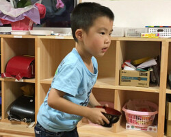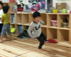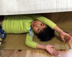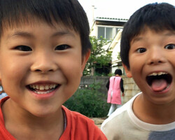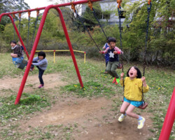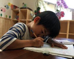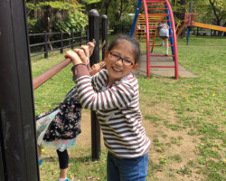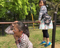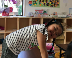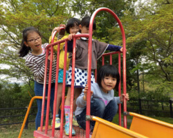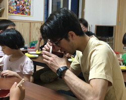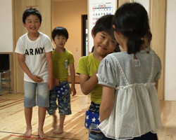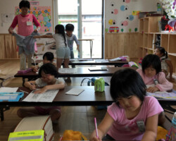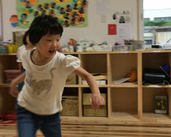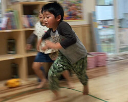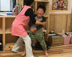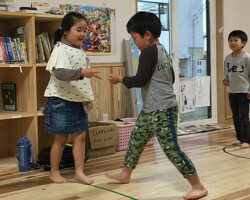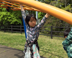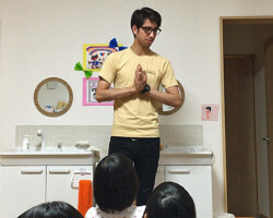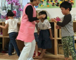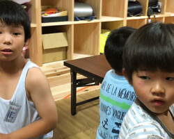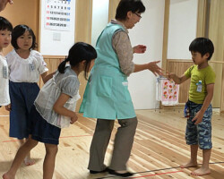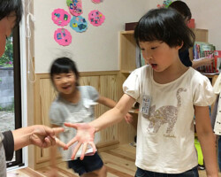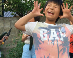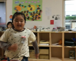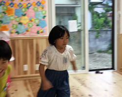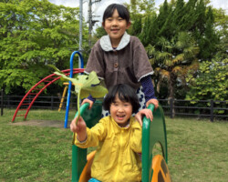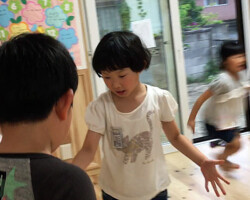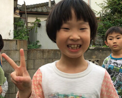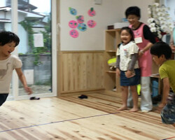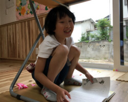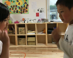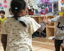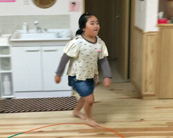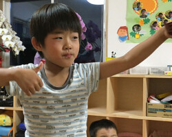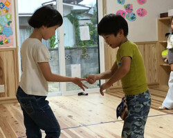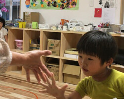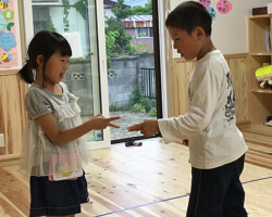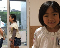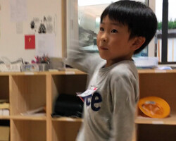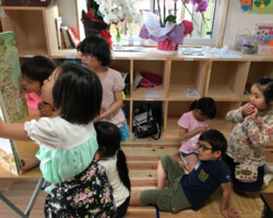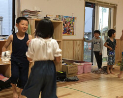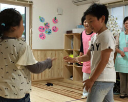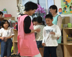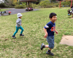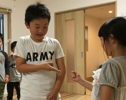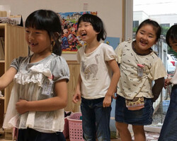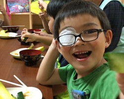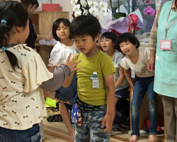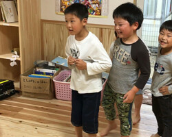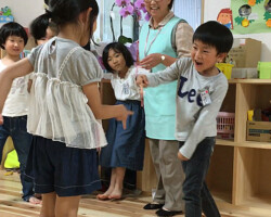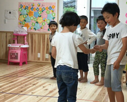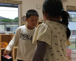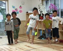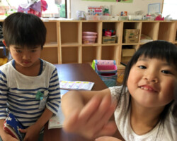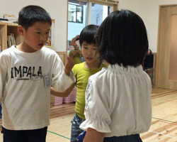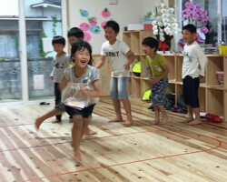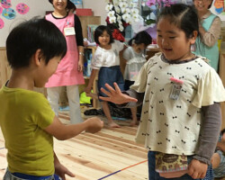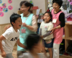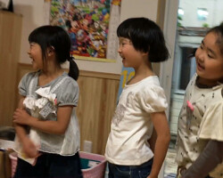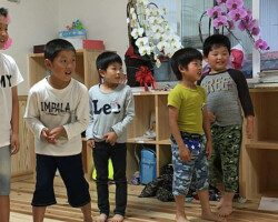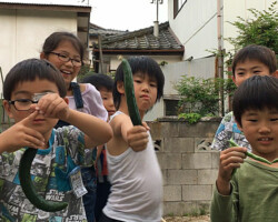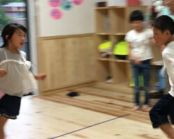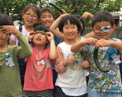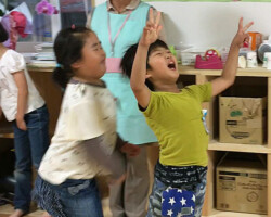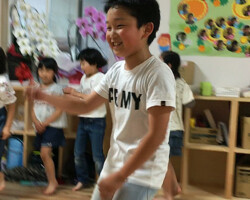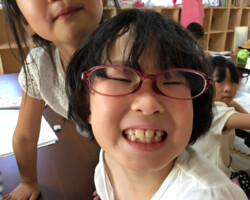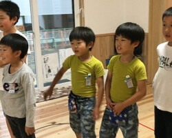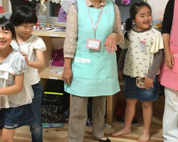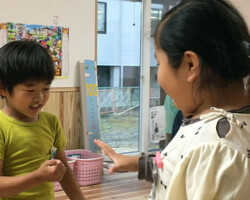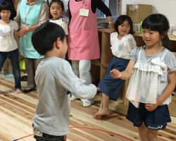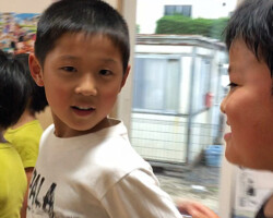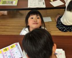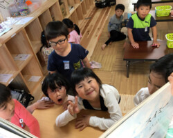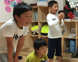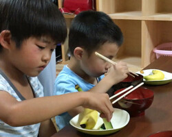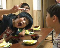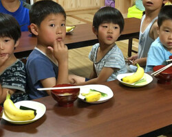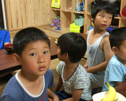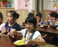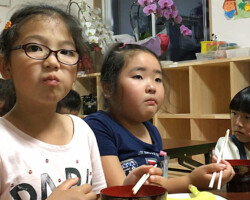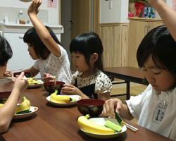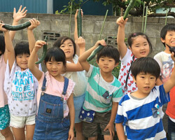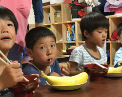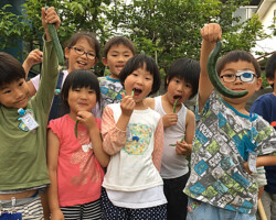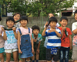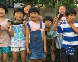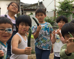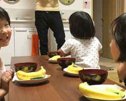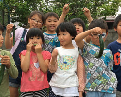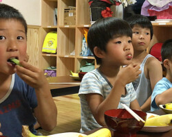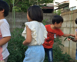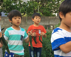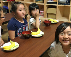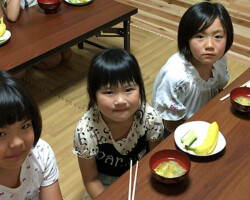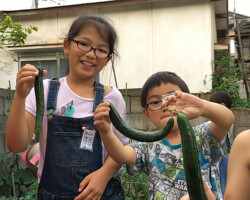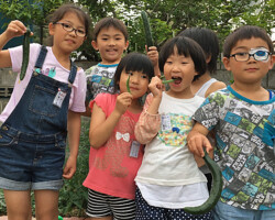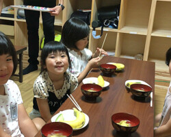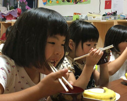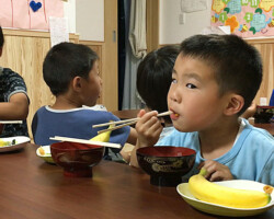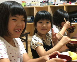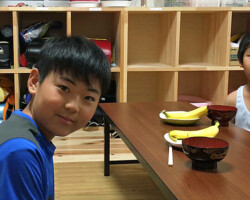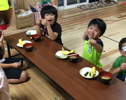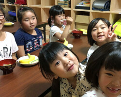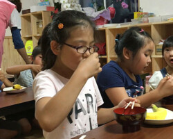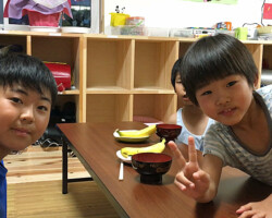 収穫した野菜で味噌汁を作って「英語で遊ぼう」の後にみんなで食べました